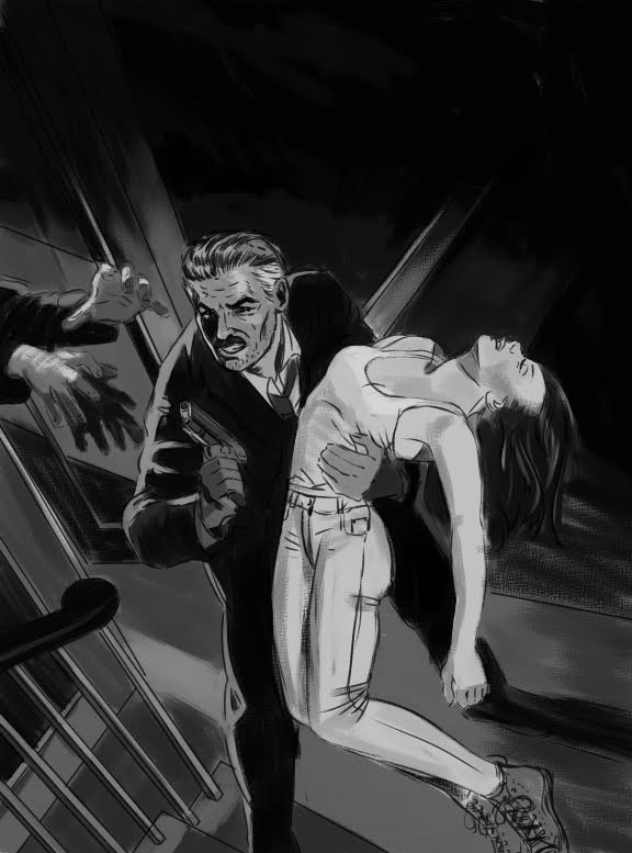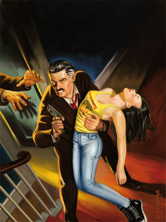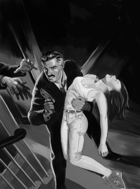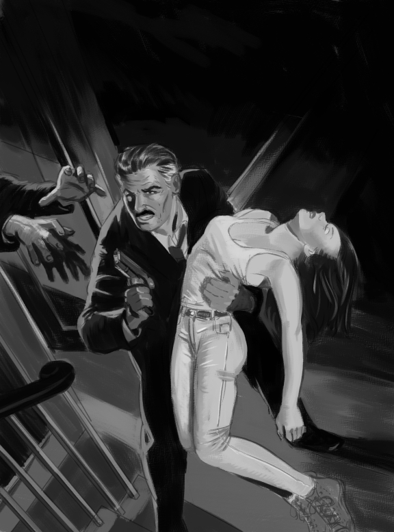 También pensando en su serialidad es que cada capítulo viene acompañado por una ilustración especialmente pensada y dibujada por CJ Camba. La cubierta también fue pensada como homenaje al ilustrador de pulp fictions hard-boiled Rafael De Soto como pueden ver el proceso aquí debajo.
