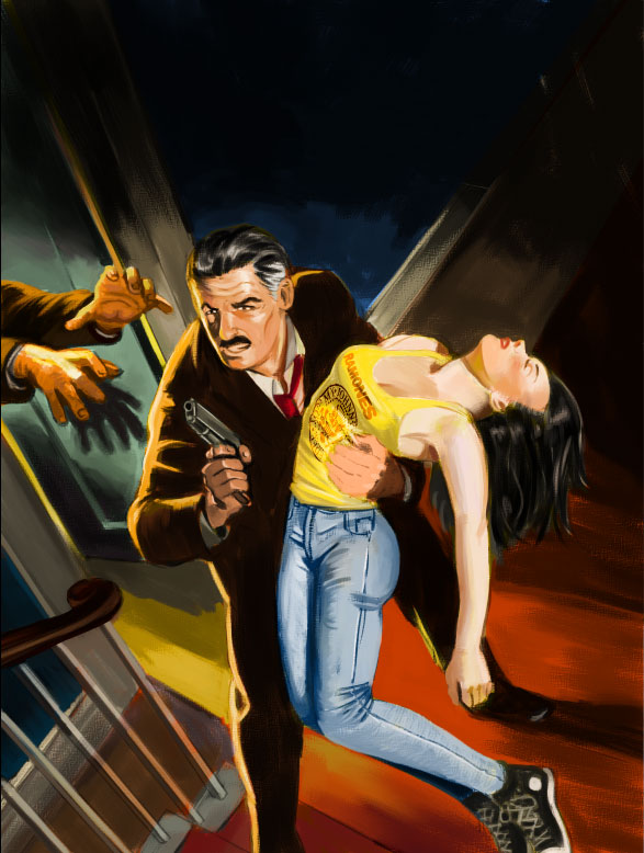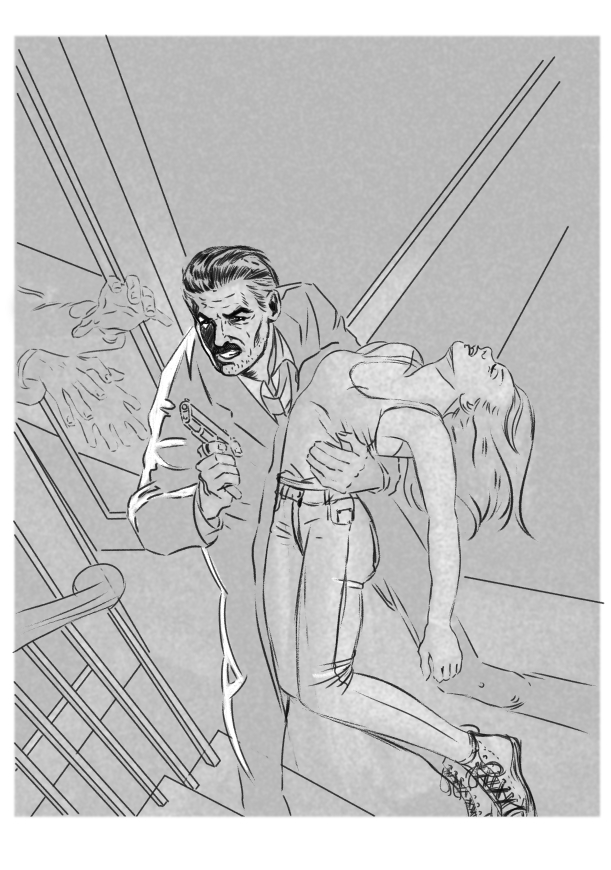 La imagen la está realizando CJ Camba quien ya hizo varias ilustraciones para mi saga Rituales y está basada a mi pedido en una portada de pulp-fiction de Rafael de Soto que me encanta.