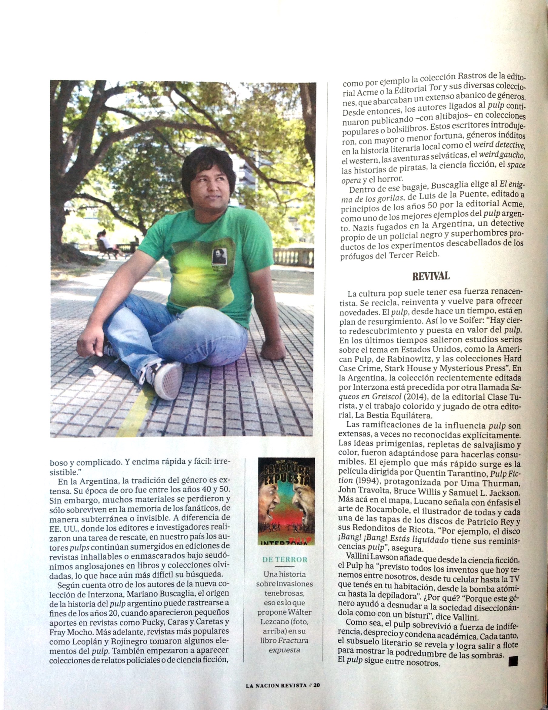 Salió publicada hoy en Revista La Nación una nota acerca de la colección de libritos de género pulp fiction, Zona Pulp, que dirijo para Interzona Editora.